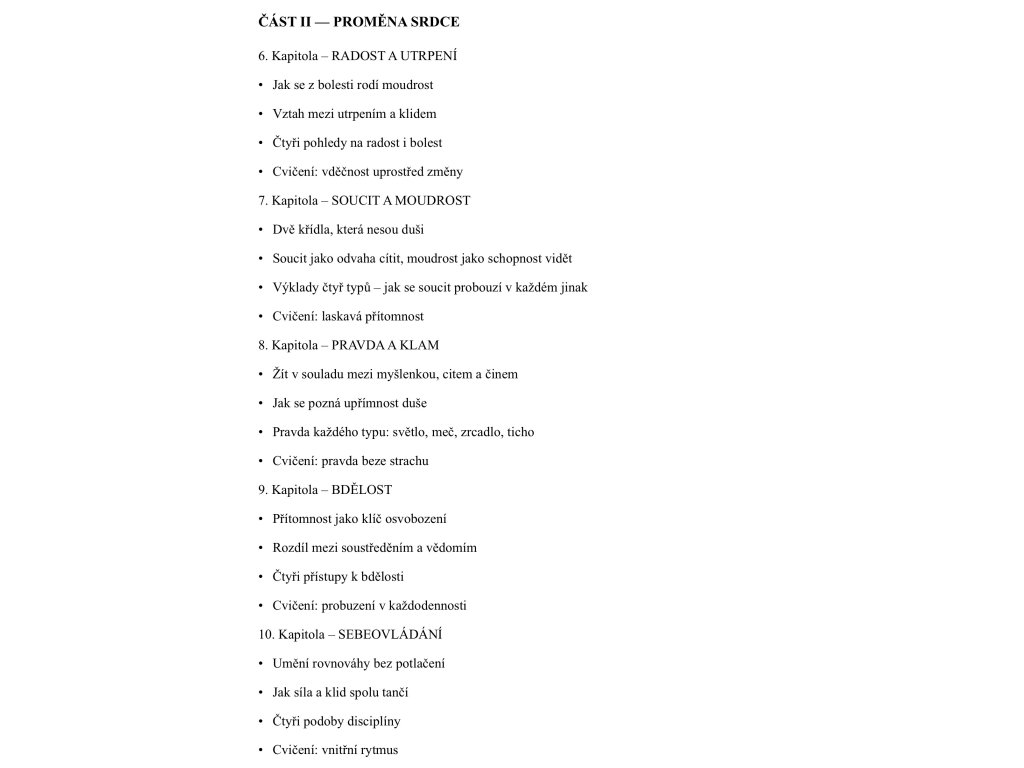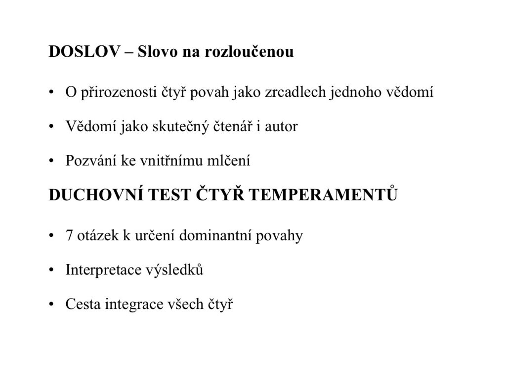 Vybrané kapitoly proto tvoří jakousi „vnitřní osu“ – duchovní mapu, po níž se čtenář může pohybovat skrze pohledy čtyř povah: sangvinika, cholerika, melancholika a flegmatika.