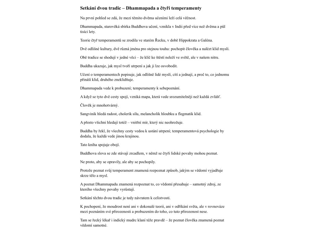 DHAMMAPADA - CESTA ČTYŘ TEMPERAMENTŮ