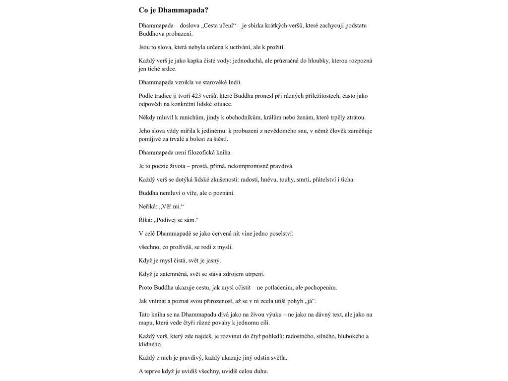 Tato kniha není úplným překladem Dhammapady, ale jejím živým výběrem.