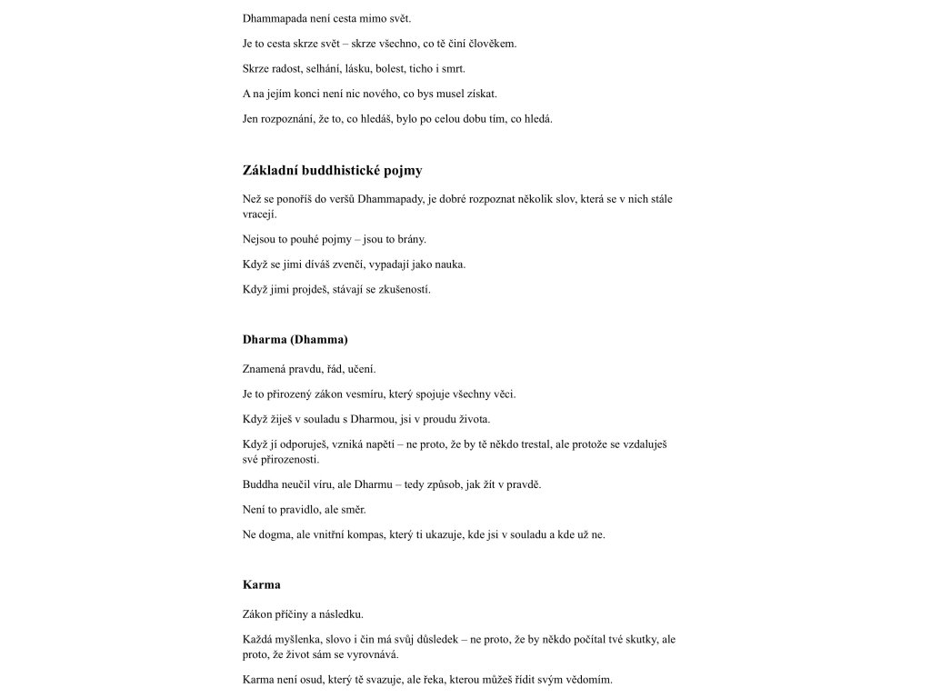 Ostatní kapitoly Dhammapady zůstávají otevřené.
